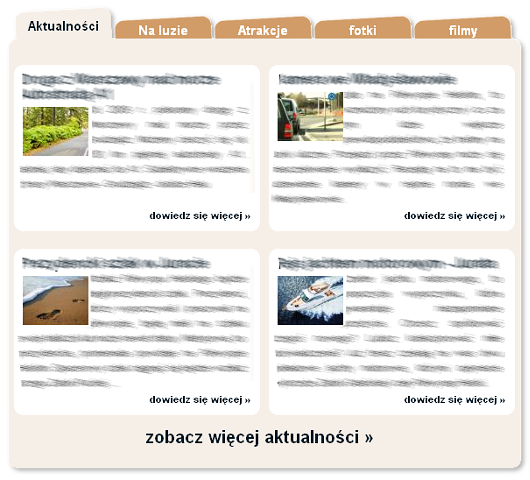 Wybierz jeden z dostępnych w serwisie działów: Aktualności, Na luzie, Atrakcje